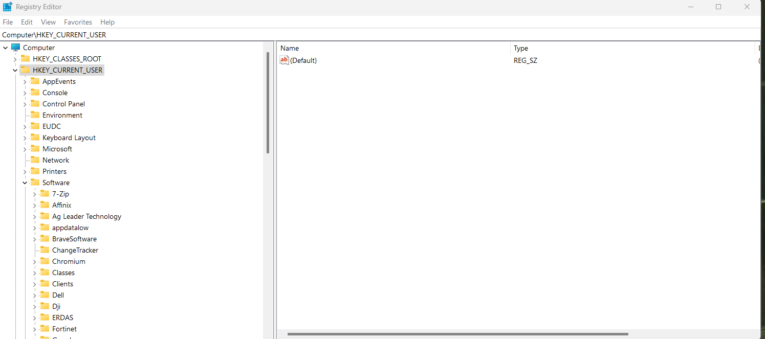 5. In the Windows Search, type RegEdit and search for the folder stored in the path: HKEY_CURRENT_USER\Software\pix4d\pix4dfields and ensure this folder no longer exists. If it exists, DELETE this PIX4Dfields folder.